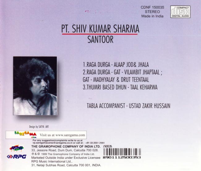 収録曲一覧1.Raga Durga -Alaap Jod & Jhala[25:28]2.Raga Durga-Gat-Vilambit Jhaptaal; Gat-Mdahyalay & Drut Teental[25:00]3.Thumri Based Dhun - Taal Keharwa[16:43]