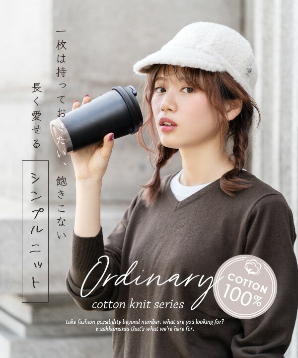 【特別送料無料!】M/L/LL/3Lサイズ 綿100% レディース トップス セーター カットソー プルオーバー 長袖 大きいサイズ 洗える 【メール便可22】◆zootie(ズーティー):オーディナリー コットンニット セーター[Vネック]