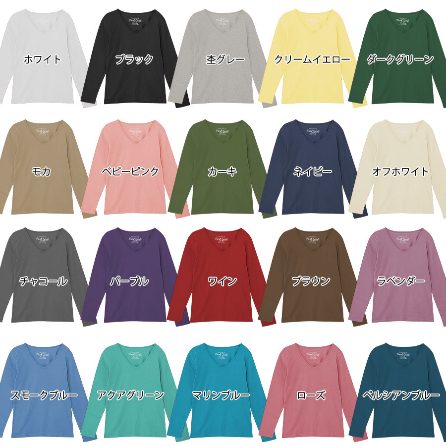 季節に関係なく着られる白黒グレー、ネイビーのベーシックカラーから 差し色にぴったりなブルー系やピンク系、シックなアースカラーまで、充実の全20色カラー! サイズも幅広くSから3Lサイズまで5サイズを揃えています。