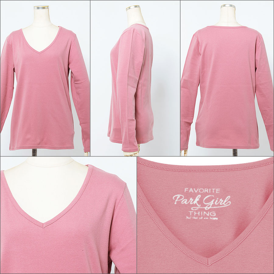 【送料無料】【メール便対応/代引不可[M便 1/2]】■CLOTHY BASIC■ コットン100% フライス素材 無地 Vネック 長袖 レディース Tシャツ (S/M/L/LL/3L)[5628300000][RCP][SSP]