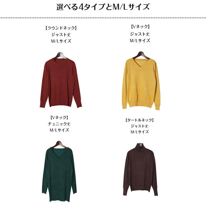 [関連ワード] トップス チュニック ニット レディース Vネック ラウンドネック 長袖 セーター 洗える 黒 白 パープル M / Lサイズ 体型カバー 美ゆるベーシック♪