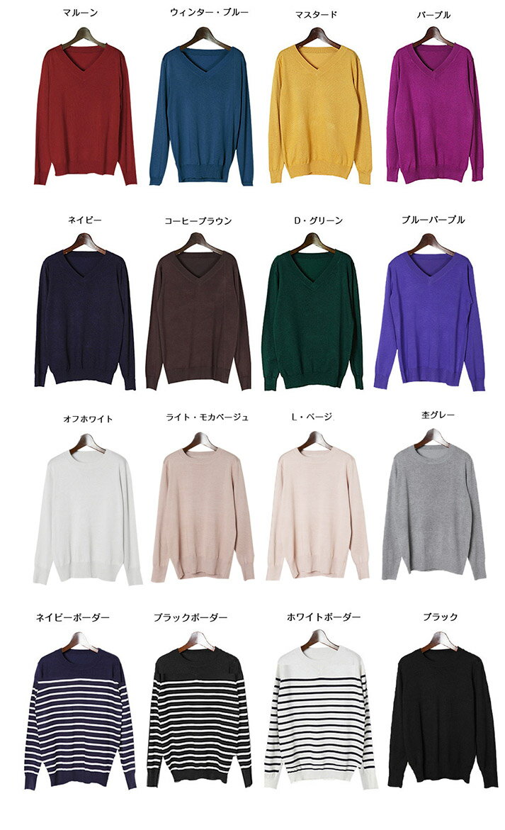 トップス チュニック ニット レディース Vネック ラウンドネック 長袖 セーター 洗える 黒 白 パープル M / Lサイズ 体型カバー 美ゆるベーシック♪カシミヤタッチニット ボーダー 秋新作 DarkAngel/ダークエンジェル