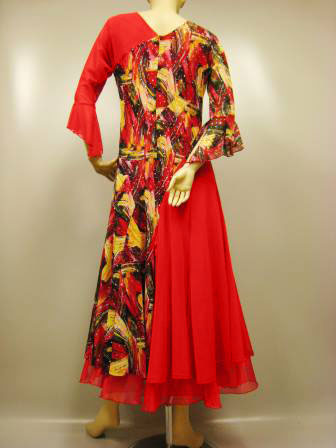 貼りスパンプリント切り替えハイクオリティーモダンドレス。